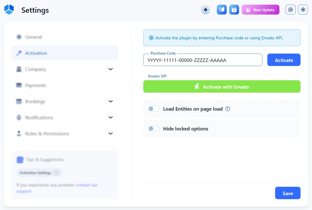 If you purchased Amelia from CodeCanyon, you don’t need to enter a purchase code. Simply click the Activate with Envato button in Amelia’s Activation settings. This will redirect you to your Envato account to securely confirm your license.
