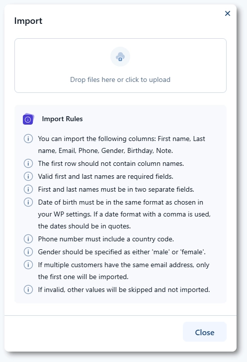 Ensure your CSV file uses the correct date and phone formats before uploading.