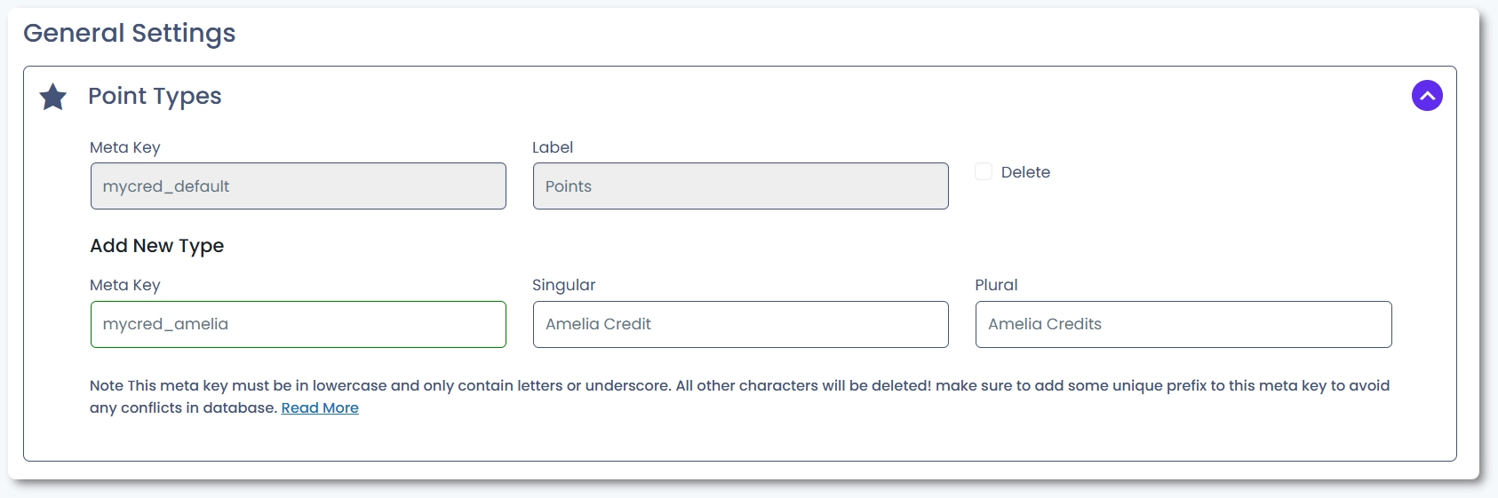 After activation, open the myCred setup screen and create a point type. Once the point type is created, myCred will display the settings for managing balances, logs, and point-related rules. You should already have Amelia installed, and if not, you can follow the installation steps in the Amelia installation documentation.