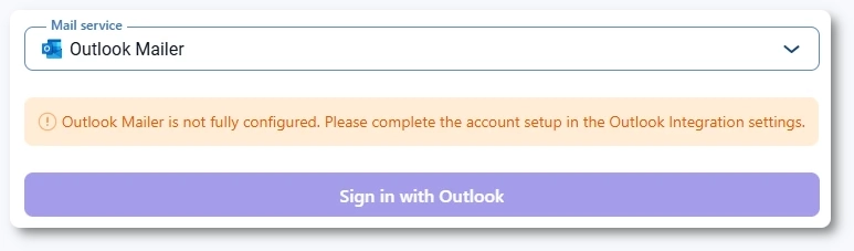 If Outlook is connected using the standard Sign in with Microsoft setup, Outlook Mailer is automatically authenticated. There is no Sign in with Outlook or Sign out button.
