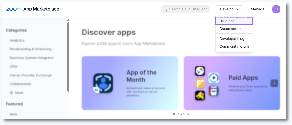 Start by signing in to your Zoom account and opening the Zoom App Marketplace.